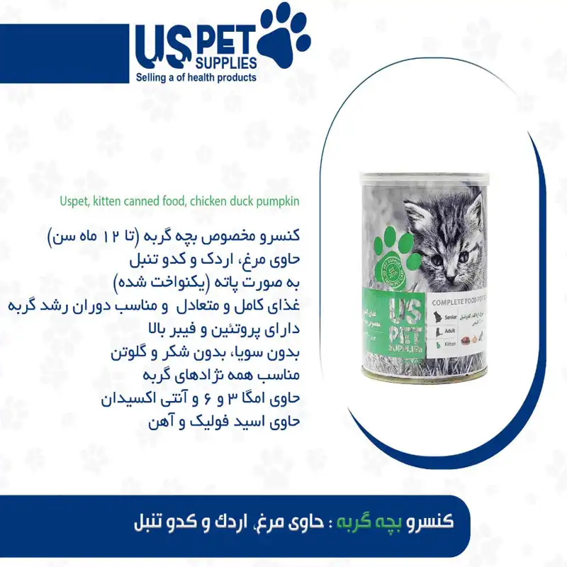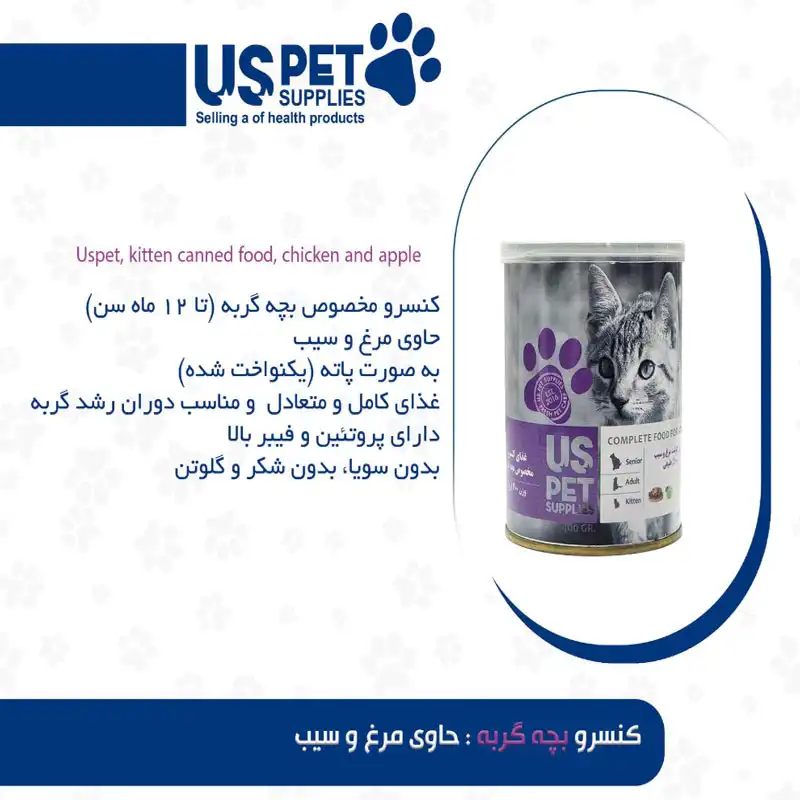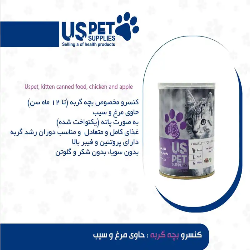 کنسرو 400 گرمی بچه گربه حاوی مرغ و سیب یو اس پت