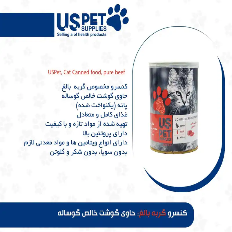 کنسرو ۴۰۰ گرمی گربه بالغ گوشت خالص گوساله یو اس پت