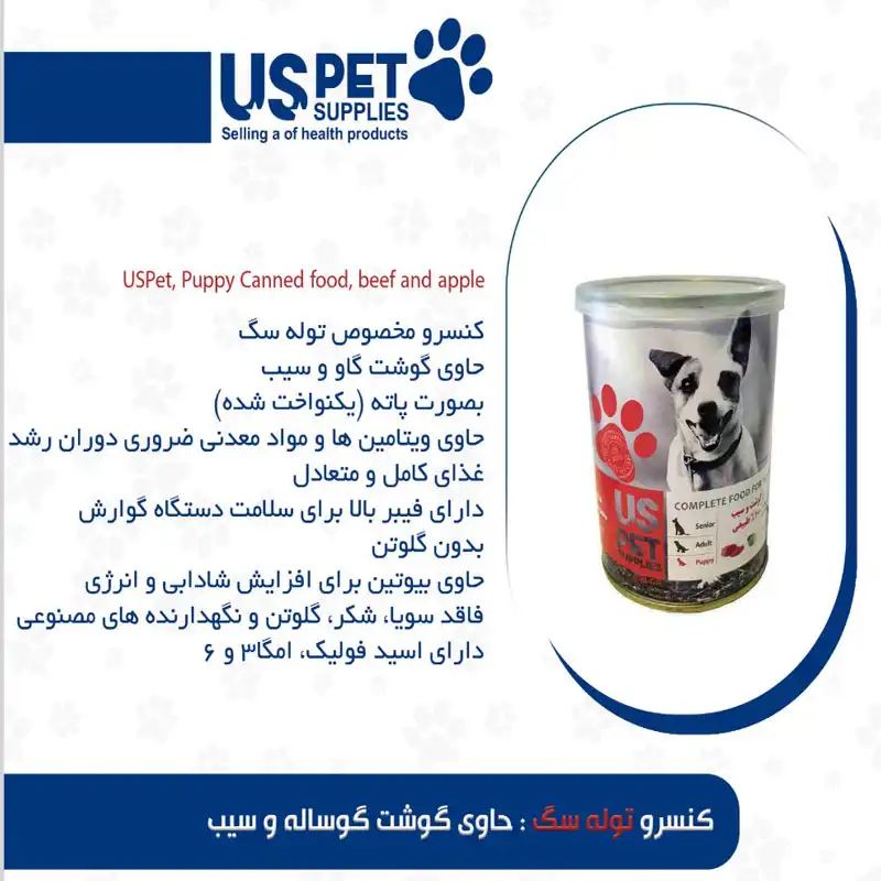 کنسرو ۴۰۰ گرمی توله سگ گوشت گوساله و سیب یو اس پت